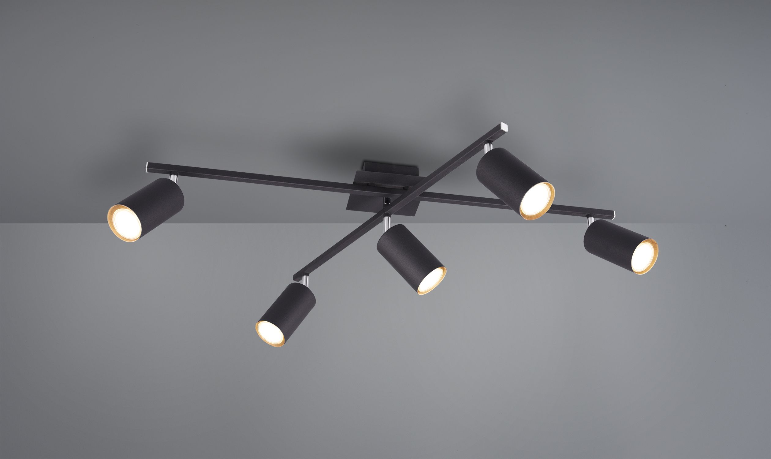 The arms and spotlights of the 5-bulb ceiling light are freely movable and can be individually aligned as required.