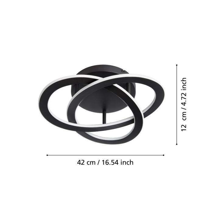 Μοντέρνα πλαφονιέρα οροφής της Eglo σε μαύρο χρώμα, από μέταλλο.