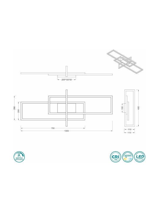 Φωτιστικό Πλαφονιέρα Οροφής L100x40xH11,5cm Smd Led 34w 3900lm 3000K Brass Mat-Black Mat Trio Salinas 620310308