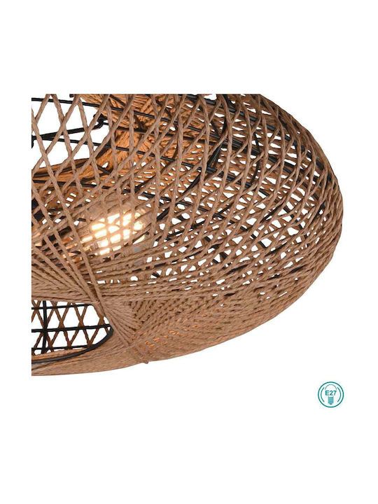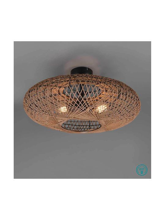 Φωτιστικό Πλαφόν Οροφής Ø52xY28 cm Δίφωτο 2xE27 Μαύρο Μέταλλο-Πλέγμα Sisal Trio Lighting Hedda 612300236
