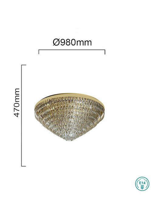 Φωτιστικό Πλαφόν Οροφής Ø98xH47cm Εικοσιπεντάφωτο 25xE14 Χρυσαφί -Διάφανα Κρύσταλλα Eglo Valparaiso 39461