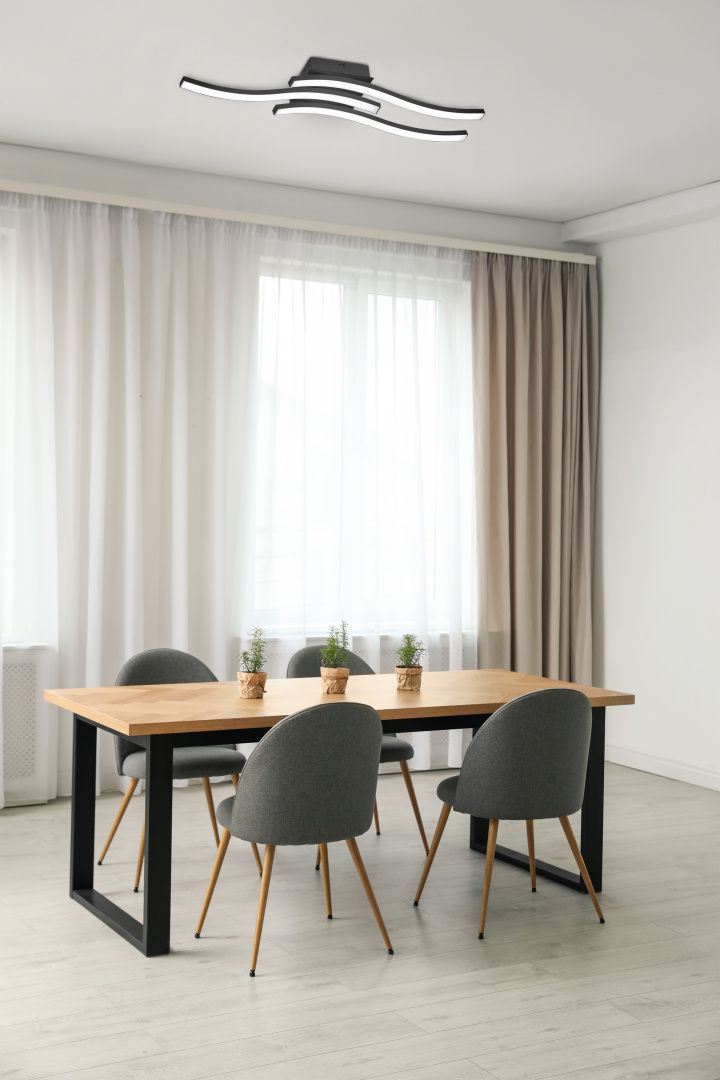 The ROUTE ceiling light features a modern and elegantly curved design.