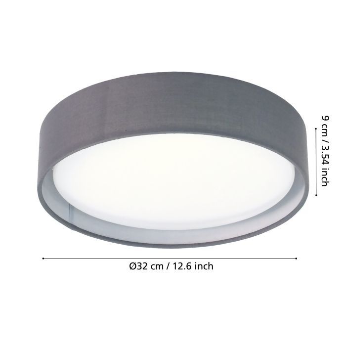 Φωτιστικό Πλαφόν Οροφής Led 3x3,6w 1100lm Warm White Ø320xH190mm Νίκελ Ματ- Ύφασμα Γκρι-Γυαλί Eglο Pasteri 31592