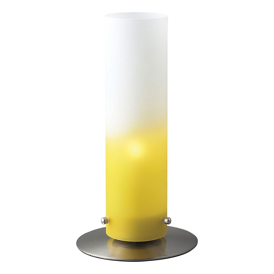 Επιτραπέζιο φωτιστικό (μονόφωτο πορτατίφ) με μεταλλική βάση σε νίκελ ματ και γυαλί κίτρινο και λευκό χρώμα.Ύψος: 20,5 εκ.Διάμετρος: 11 εκ.Λαμπτήρες: 1 τεμ.Τύπος Λαμπτήρα: G9Watt: 40