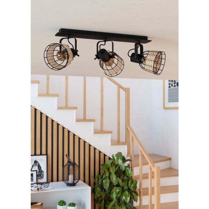 Φωτιστικό Ράγα Σποτ Τρίφωτη  L670xH240mm  3xE27 Μαύρο Ράταν Eglo Anwick 1 43326