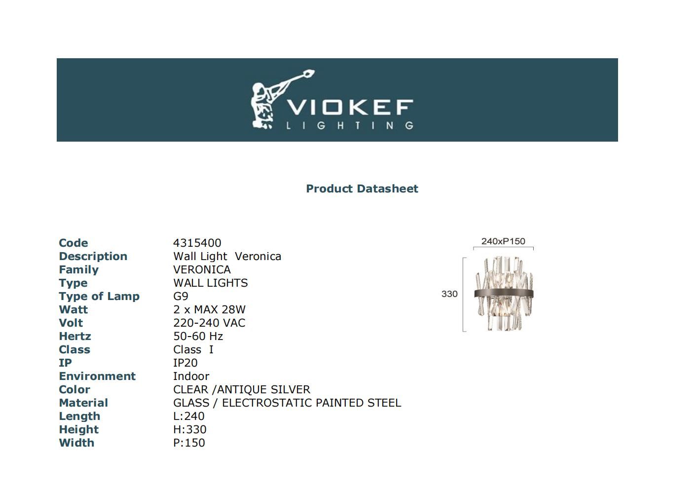 - ✔ Περιγραφή: Φωτιστικό Τοίχου Veronica
