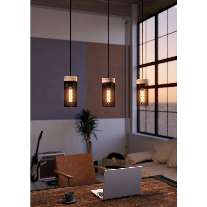 Φωτιστικό Τρίφωτο σε Ράγα L810xH1100 mm 3xE27 Ξύλο-Μαύρο Ατσάλι Eglo Kilnsdale 43834