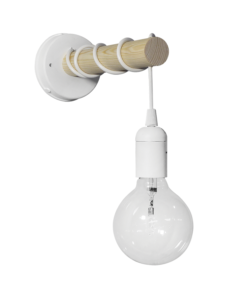 Φωτιστικό τοίχου / απλίκα ξύλινη με καλώδιο λευκό & ντουί Ε/27 Δεν συμπεριλαμβάνεται ο λαμπτήρας
