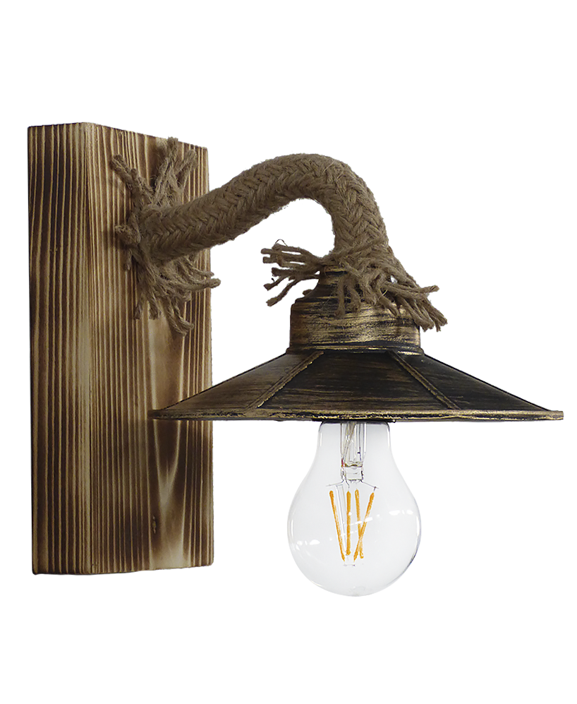 Απλίκα επιτοίχια ,ξύλινη με σχοινί ,πλαστικό καπέλο R-150ΑΡ-S- Δεν συμπεριλαμβάνεται ο λαμπτήρας