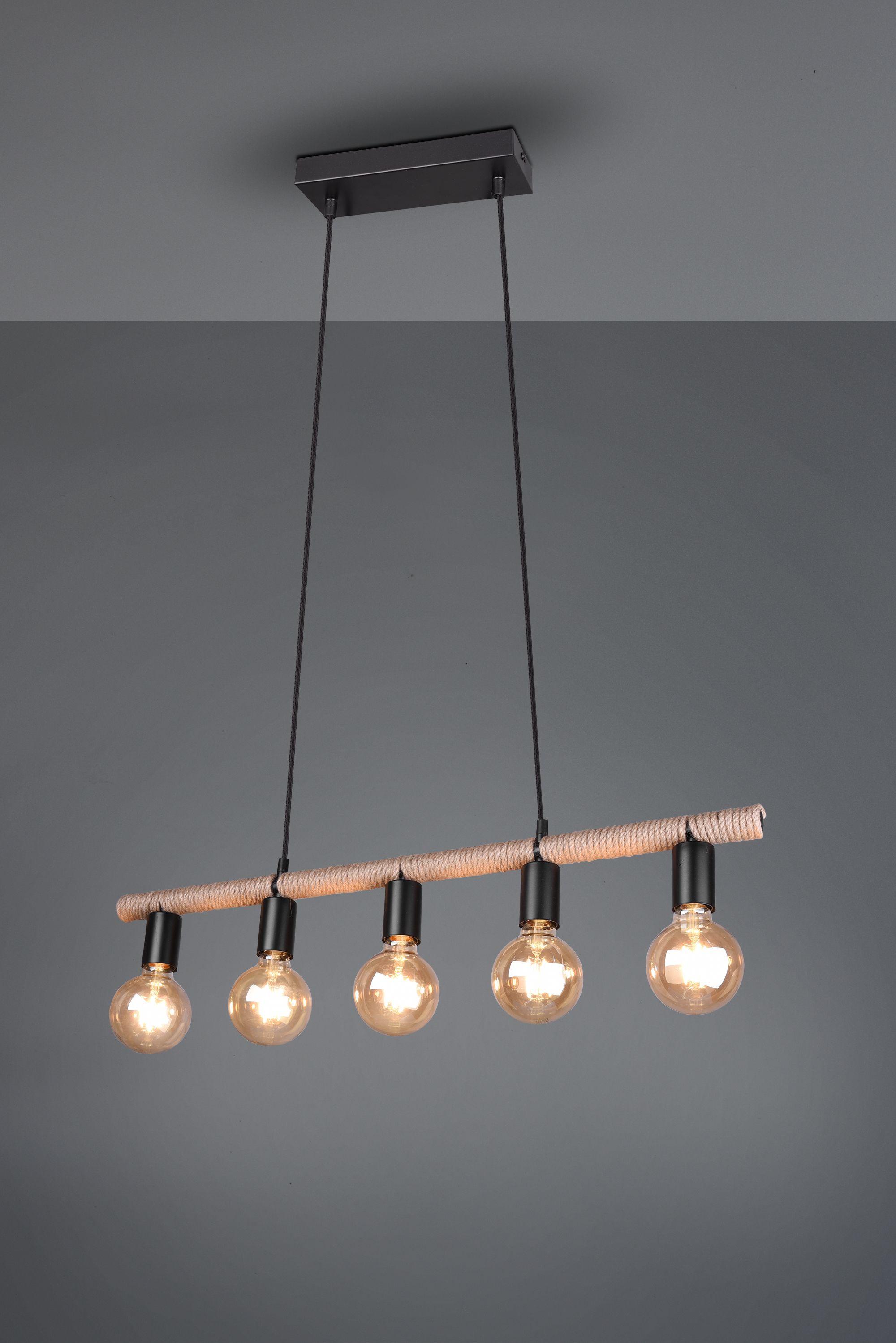 Φωτιστικό Vintage Κρεμαστό 80xH150cm 5xE27 Σχοινί Trio Lighting Einar R30605032