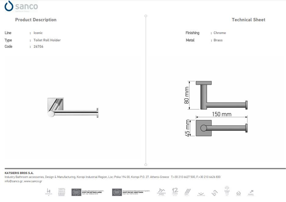Χαρτοθήκη Ανοιχτή Sanco Iconic Brushed Nikel 26706-A73