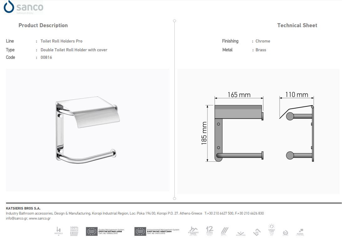 Χαρτοθήκη Διπλή με καπάκι White Mat Sanco Toilet Roll Holders Pro 0816-M101