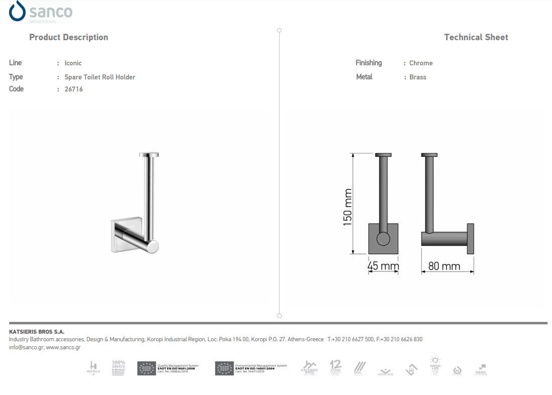 Χαρτοθήκη Εφεδρική Sanco Iconic Chrome 26716-A03