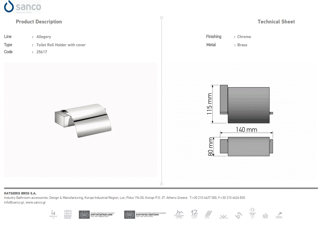 - Χαρτοθήκη Επιτοίχια Brushed Brass-Black Mat Sanco Allegory 25606-AB12-M116 Ειδική Τιμή 117,00 € Κανονική τιμή 150,00 €