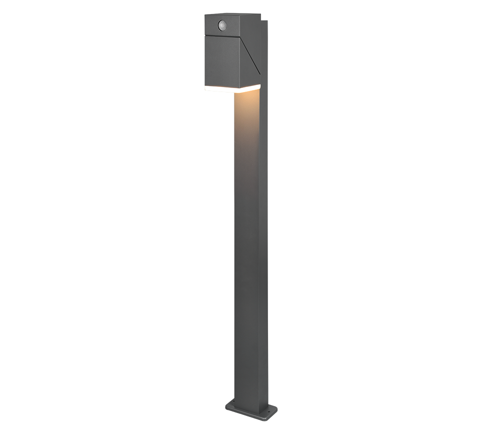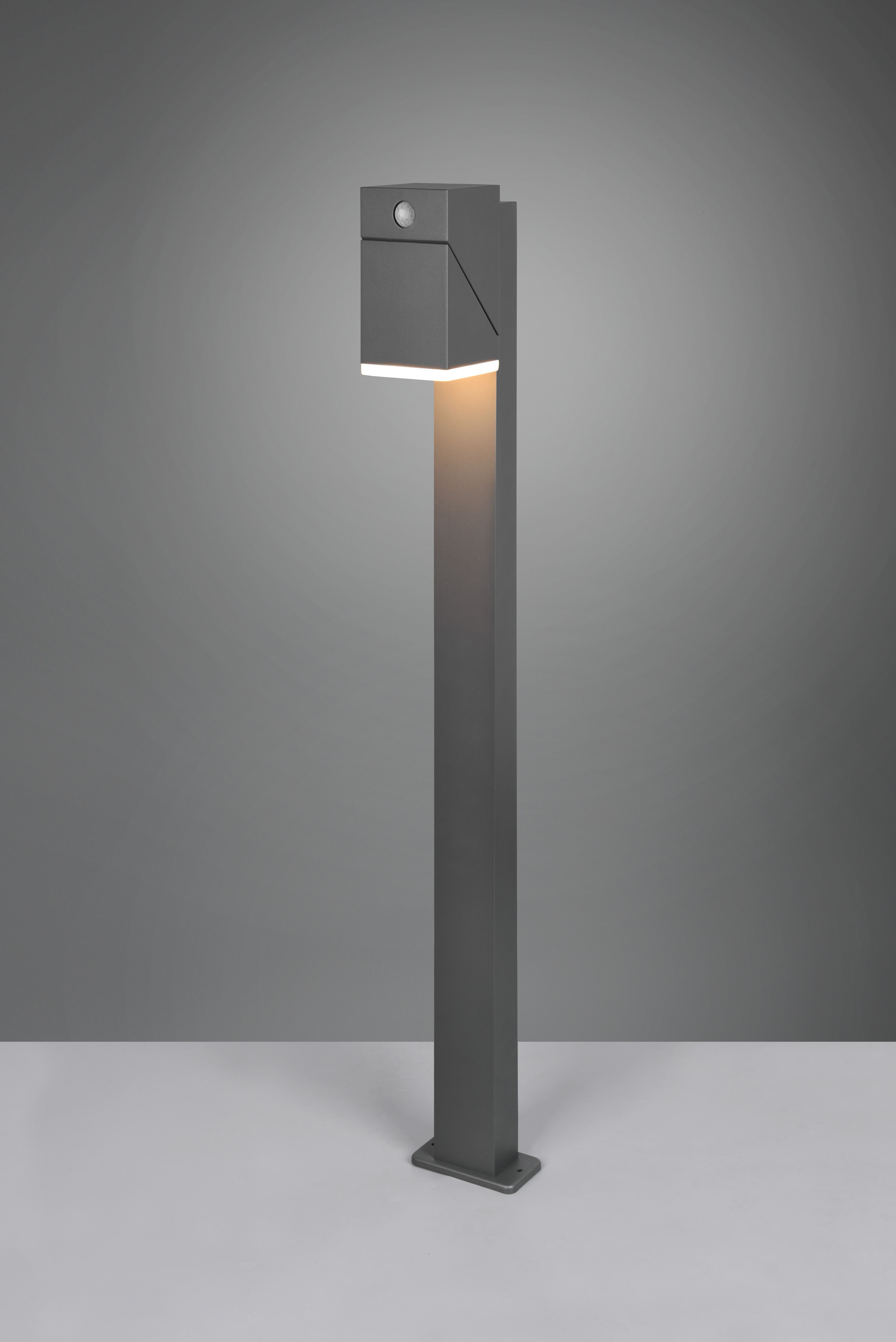 Κολωνάκι φωτισμού της Trio Lighting σε γκρι χρώμα, για χρήση σε εξωτερικούς χώρους. Διαθέτει βαθμό προστασίας IP54, που δηλώνει ότι έχει μερική προστασία απέναντι στη σκόνη και τη ρήψη νερού με μεγάλη ένταση (πχ. καταρρακτώδης βροχή). Εκπέμπει θερμό λευκό φως που αποδίδεται στην κλίμακα Kelvin με τιμές από 2400Κ έως 3800Κ. Αυτοί οι τόνοι του λευκού είναι πιο κίτρινοι σε σχέση με το φυσικό φως.