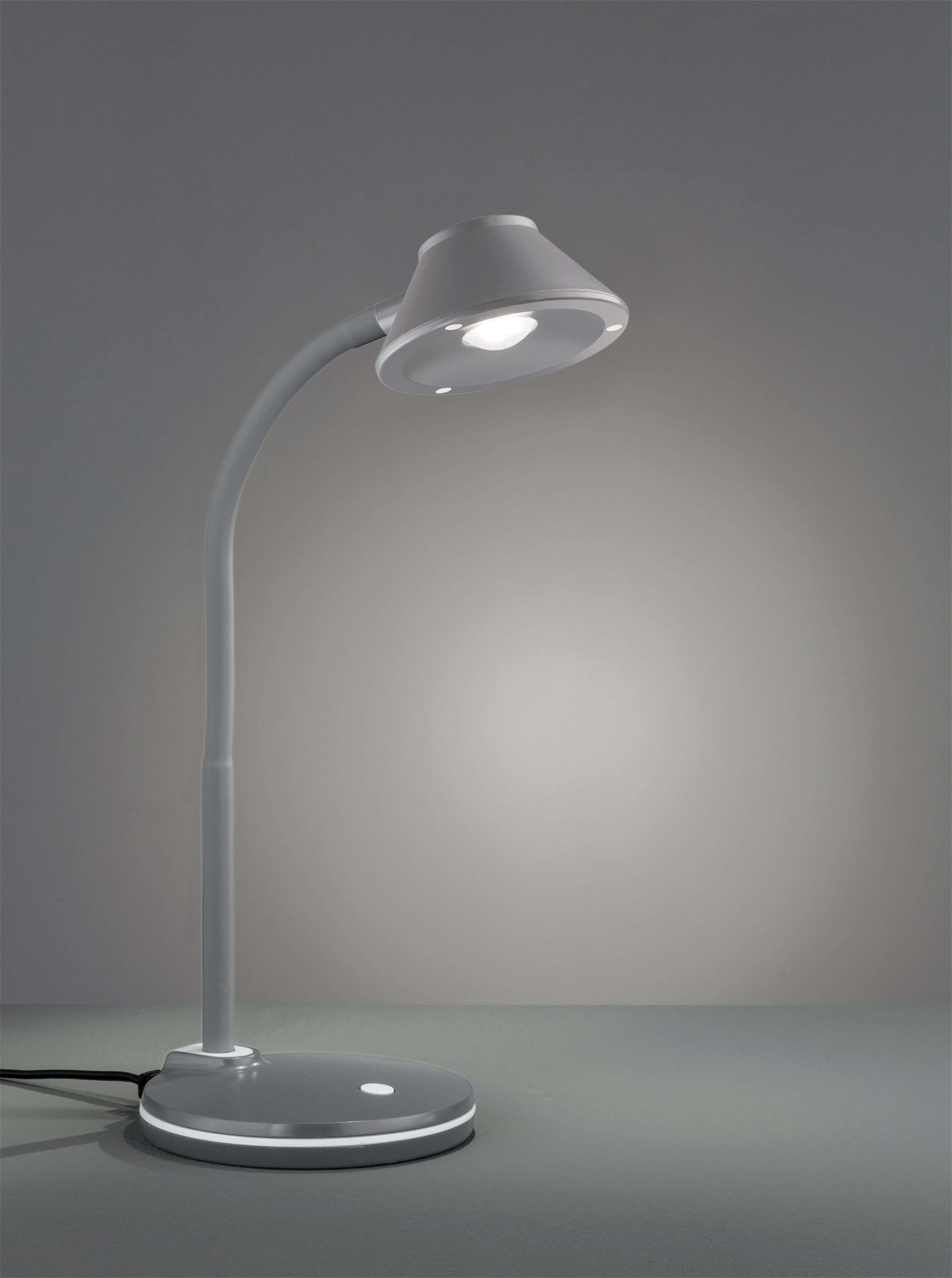The BERRY table lamp is characterised by its timeless, modern design. The table lamp can be individually adjusted thanks to its simple shape and flexible neck for targeted light direction. This makes BERRY ideal as modern and functional desk lighting. The table lamp has a maximum height of 36 cm and a maximum projection of 25 cm. The titanium-coloured design can be combined with various furnishing and colour concepts. In addition, the luminaire features modern LED technology, which is characterised by high light quality and energy efficiency. Compared to conventional halogen lamps, up to 80% of energy costs can be saved. In addition, LED light sources have a long service life, produce less heat and protect the environment.