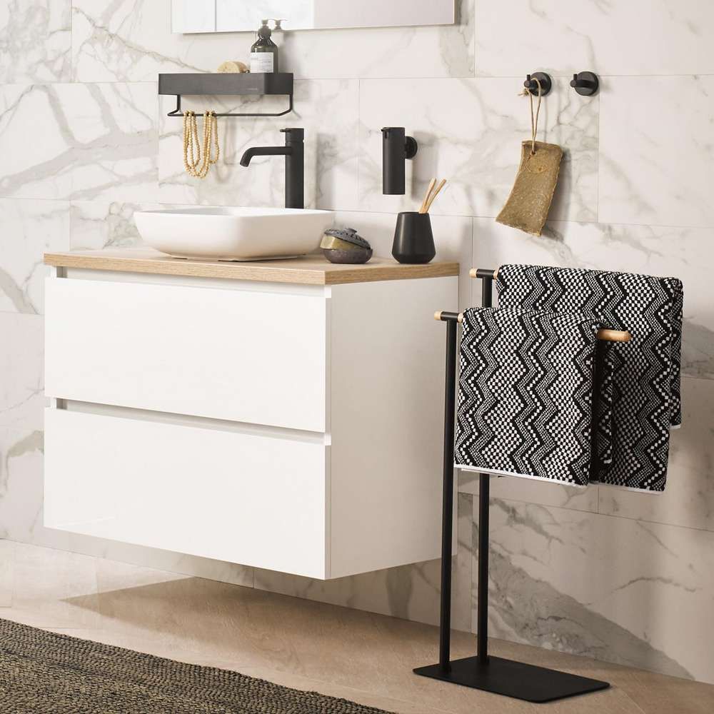 Τα πάντα για ένα τακτοποιημένο μπάνιο. Η Sealskin έχει τελειοποιήσει τη βιομηχανική εμφάνιση για εσάς. Με αυτό το μαύρο μεταλλικό ράφι τοίχου από τη σειρά Brix της Sealskin, μπορείτε να δώσετε σε όλα τα αγαπημένα σας αντικείμενα ένα υπέροχο σημείο. Χάρη στις ράγες κάτω από το ράφι, μπορείτε επίσης να αποθηκεύσετε αρκετές πετσέτες. Οργανώστε όπως μόνο η Marie Kondo μπορεί. Δεν είναι ιδανικό μόνο για να διαμορφώσετε το μπάνιο αλλά επίσης και την κουζίνα σας! Αναμφισβήτητα ένα αντικείμενο που πρέπει να αποκτήσετε οπωσδήποτε.