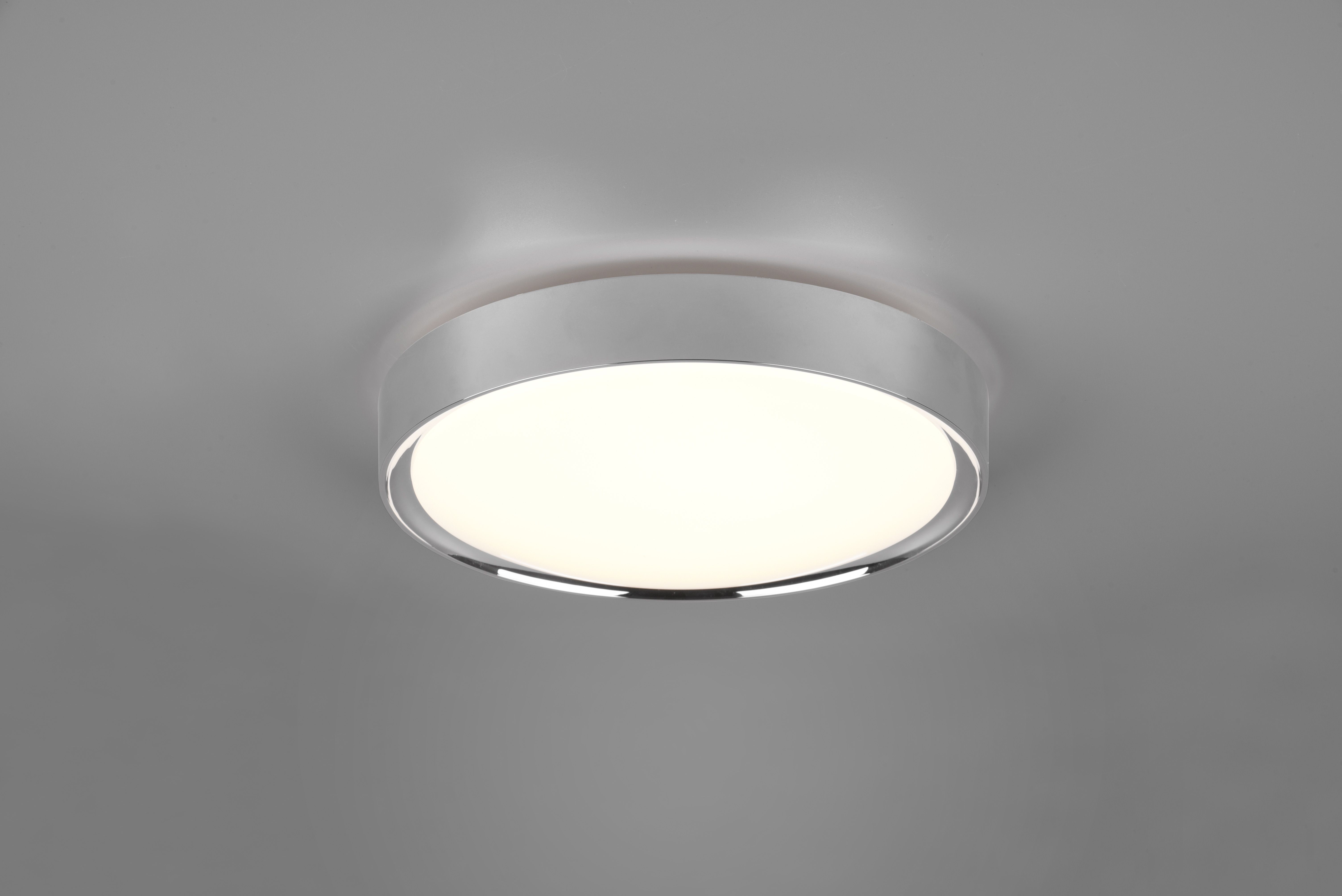 Μοντέρνα πλαφονιέρα οροφής της Trio Lighting σε ασημί χρώμα, από πλαστικό. Διαθέτει ενσωματωμένο LED, το οποίο εκπέμπει θερμό λευκό φως που αποδίδεται στην κλίμακα Kelvin με τιμές από 2400Κ έως 3800Κ. Αυτοί οι τόνοι του λευκού είναι πιο κίτρινοι σε σχέση με το φυσικό φως.