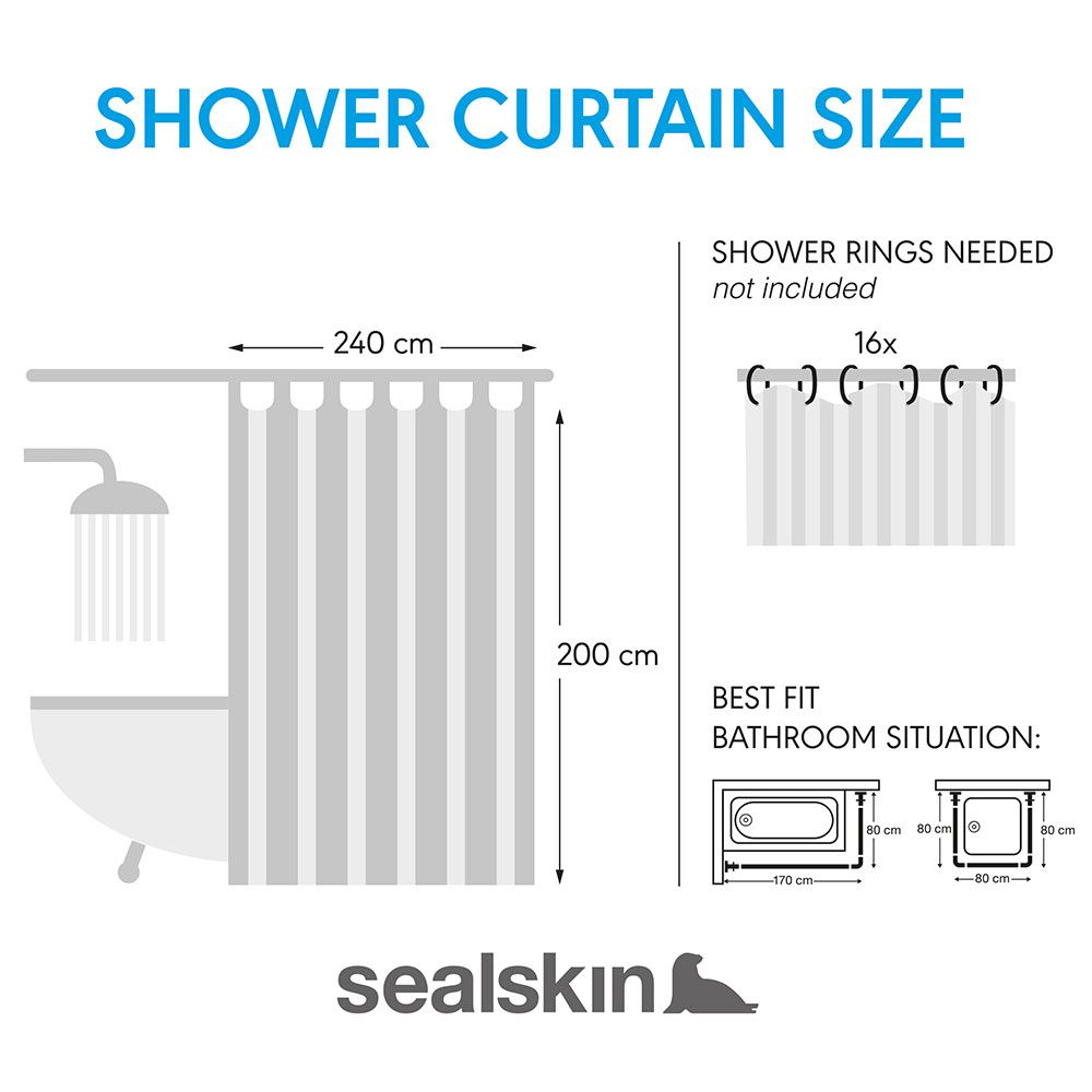 Αναβαθμίστε το μπάνιο σας με την κομψή κουρτίνα μπάνιου Sealskin Cosima. Η κουρτίνα μπάνιου είναι αδιάβροχη και μένει τακτοποιημένη στη θέση της χάρη στο ενισχυμένο κάτω στρίφωμα. Ιδανική για να διατηρείτε στεγνό το μπάνιο σας! Η κουρτίνα ταιριάζει σε κάθε στυλ μπάνιου. Εκτός από πρακτική, είναι και μια κομψή προσθήκη. Απολαύστε ένα στεγνό και μοντέρνο μπάνιο με την κουρτίνα μπάνιου Sealskin Cosima.
