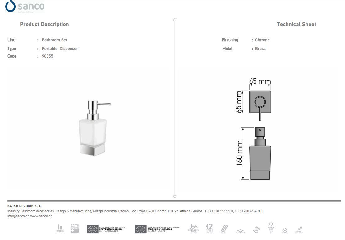 Dispenser Αντλία Σαπουνιού Επικαθήμενη Chrome Sanco Glass Bathroom Set 90355-A03