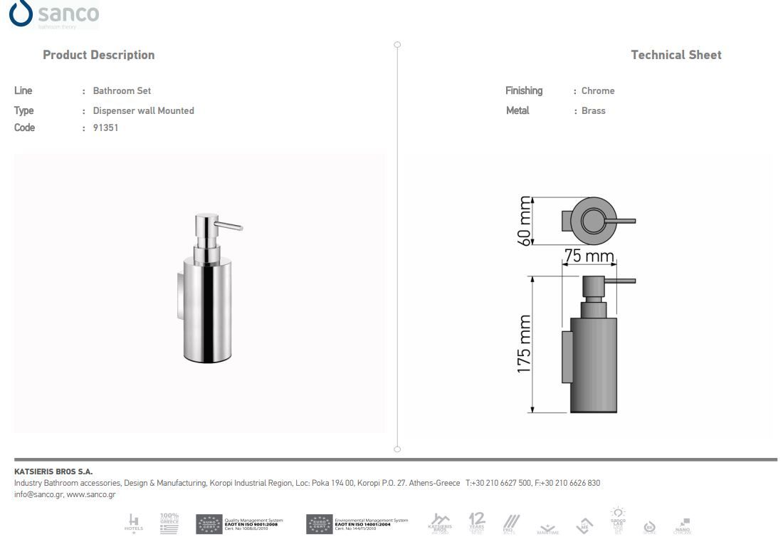 Η Αντλία Σαπουνιού της σειράς Metallic Bathroom Set της εταιρείας Sanco διατίθεται σε Επιτραπέζια & Επιτοίχια σε Χρωμέ & Μαύρο.