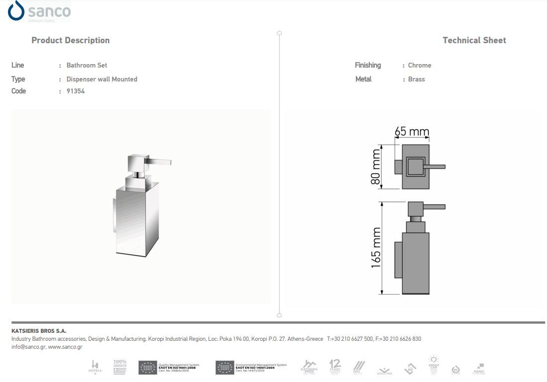 Ντισπένσερ Dispenser Επίτοιχο 500ml Sanco Metallic Bathroom Set 91351-Α03-500Ειδική Τιμή 67,50 € Κανονική τιμή 75,00 € -