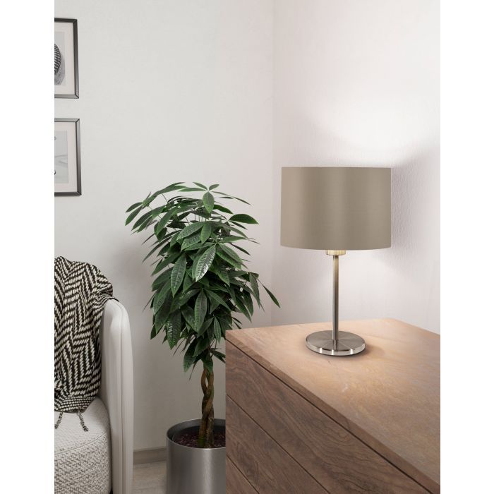 Πορτατίφ της Eglo με γκρι καπέλο και βάση σε γκρι χρώμα. Διαθέτει ντουί για λαμπτήρες E27.