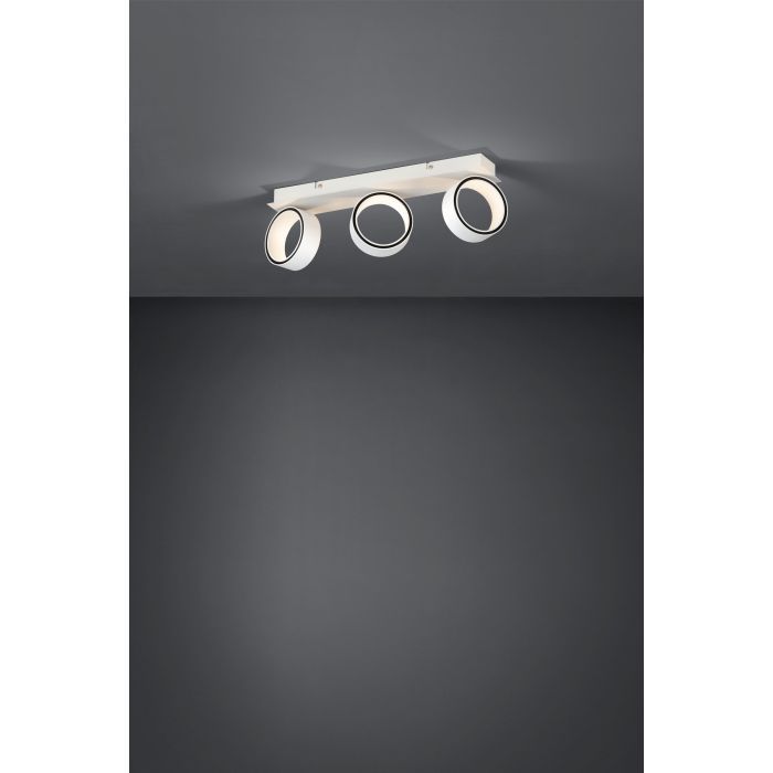 Μοντέρνα πλαφονιέρα οροφής της Eglo σε λευκό χρώμα, από μέταλλο. Διαθέτει ενσωματωμένο LED, το οποίο εκπέμπει θερμό λευκό φως που αποδίδεται στην κλίμακα Kelvin με τιμές από 2400Κ έως 3800Κ. Αυτοί οι τόνοι του λευκού είναι πιο κίτρινοι σε σχέση με το φυσικό φως.
