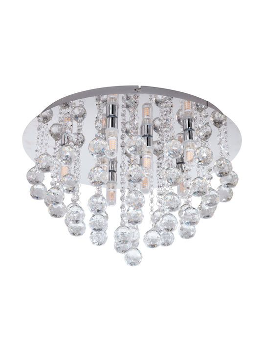 Eglo Almonte Μοντέρνα Πλαφονιέρα Οροφής με Ντουί G9 με Κρύσταλλα σε Ασημί χρώμα 50cm 97699