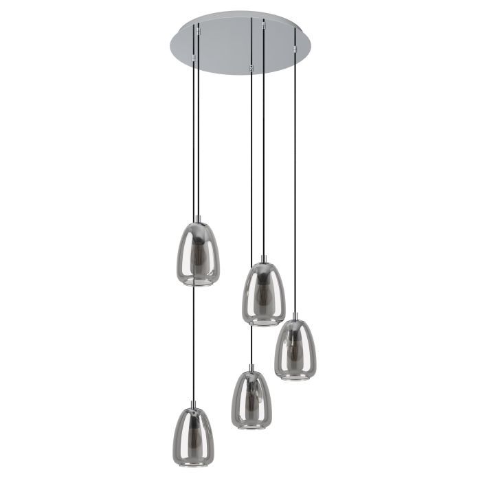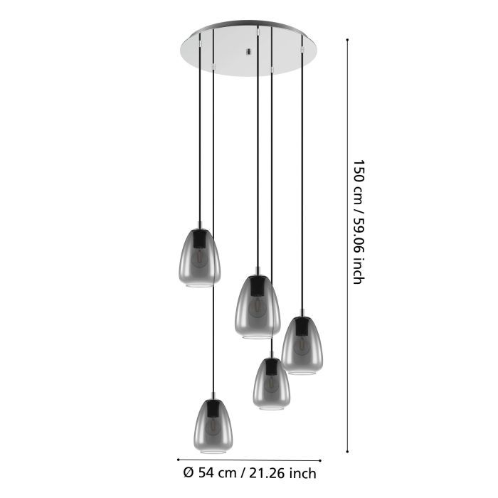 Πολύφωτο κρεμαστό φωτιστικό από την εταιρεία Eglo σε ασημί χρώμα, με υποδοχές για 5 λαμπτήρες και ντουί E27. Διαθέτει vintage σχεδιασμό που προσδίδει στυλ και χαρακτήρα στον χώρο σας, ενώ ταυτόχρονα δημιουργεί μια ατμόσφαιρα που συνδυάζει την αισθητική του παρελθόντος με τον σύγχρονο σχεδιασμό. Είναι κατασκευασμένο από μέταλλο, ένα υλικό δημοφιλή στα κρεμαστά φωτιστικά οροφής, καθώς πέρα από τη μοντέρνα νότα που προσφέρει, είναι ιδιαίτερα ανθεκτικό στον χρόνο. Καθαρίζεται εύκολα με ένα πανί.