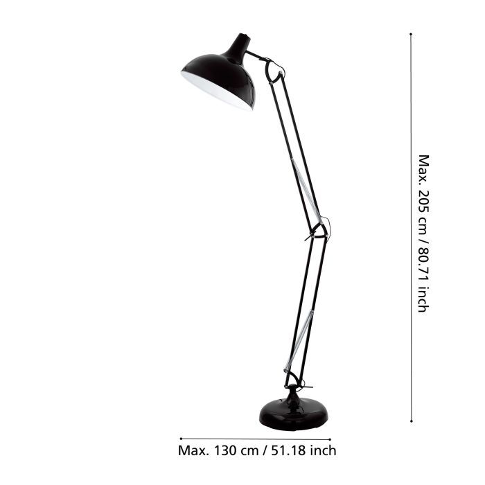 Φωτιστικό δαπέδου Borgillio της Eglo σε μαύρο χρώμα, με ντουί για λαμπτήρες E27.