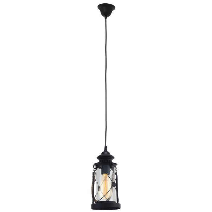 Μονόφωτο κρεμαστό φωτιστικό από την εταιρεία Eglo σε μαύρο χρώμα, με υποδοχή για έναν λαμπτήρα και ντουί E27. Διαθέτει vintage σχεδιασμό που προσδίδει στυλ και χαρακτήρα στον χώρο σας, ενώ ταυτόχρονα δημιουργεί μια ατμόσφαιρα που συνδυάζει την αισθητική του παρελθόντος με τον σύγχρονο σχεδιασμό. Είναι κατασκευασμένο από μέταλλο, ένα υλικό δημοφιλή στα κρεμαστά φωτιστικά οροφής, καθώς πέρα από τη μοντέρνα νότα που προσφέρει, είναι ιδιαίτερα ανθεκτικό στον χρόνο. Καθαρίζεται εύκολα με ένα πανί.