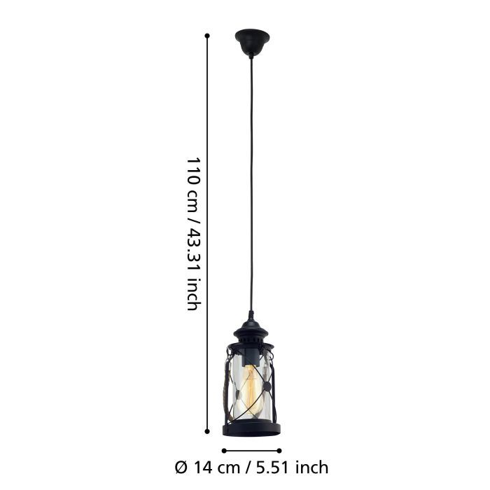 Eglo Bradford Vintage Κρεμαστό Φωτιστικό Μονόφωτο με Ντουί E27 σε Μαύρο Χρώμα 49213