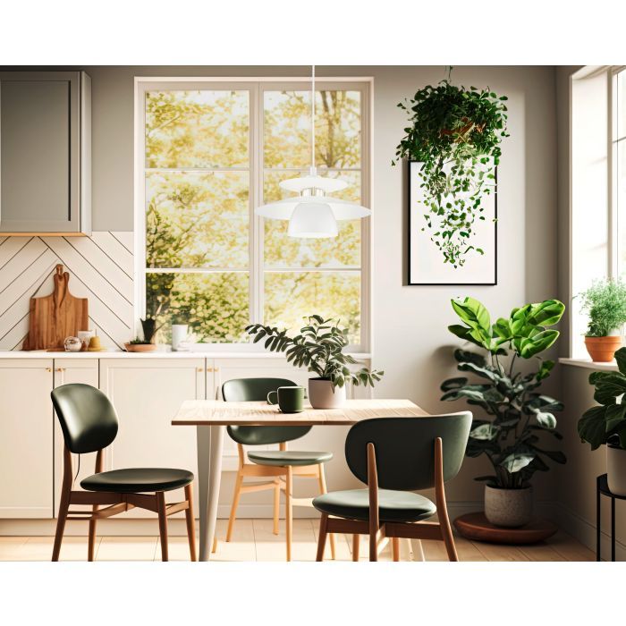 Μονόφωτο κρεμαστό φωτιστικό από την εταιρεία Eglo σε λευκό χρώμα, με υποδοχή για έναν λαμπτήρα και ντουί E27. Διαθέτει vintage σχεδιασμό που προσδίδει στυλ και χαρακτήρα στον χώρο σας, ενώ ταυτόχρονα δημιουργεί μια ατμόσφαιρα που συνδυάζει την αισθητική του παρελθόντος με τον σύγχρονο σχεδιασμό. Είναι κατασκευασμένο από μέταλλο, ένα υλικό δημοφιλή στα κρεμαστά φωτιστικά οροφής, καθώς πέρα από τη μοντέρνα νότα που προσφέρει, είναι ιδιαίτερα ανθεκτικό στον χρόνο. Καθαρίζεται εύκολα με ένα πανί.