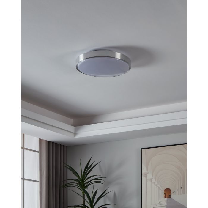 LED panel εξωτερικής τοποθέτησης της Eglo, στρογγυλό, με ισχύ 24W. Εκπέμπει θερμό λευκό φως, το οποίο αποδίδεται στην κλίμακα Kelvin με τιμές από 2400Κ έως 3800Κ. Οι τόνοι του θερμού λευκού είναι πιο κίτρινοι σε σχέση με το φυσικό φως.