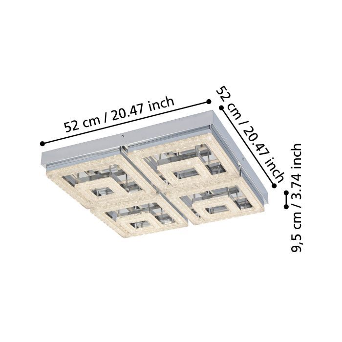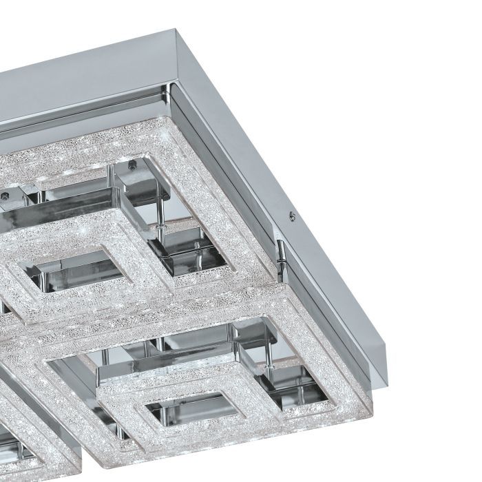 Μοντέρνα πλαφονιέρα οροφής της Eglo σε ασημί χρώμα, από μέταλλο. Διαθέτει ενσωματωμένο LED, το οποίο εκπέμπει θερμό λευκό φως που αποδίδεται στην κλίμακα Kelvin με τιμές από 2400Κ έως 3800Κ. Αυτοί οι τόνοι του λευκού είναι πιο κίτρινοι σε σχέση με το φυσικό φως.