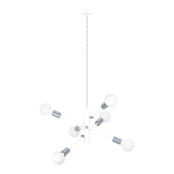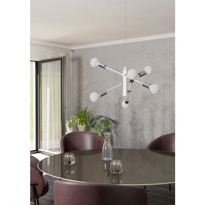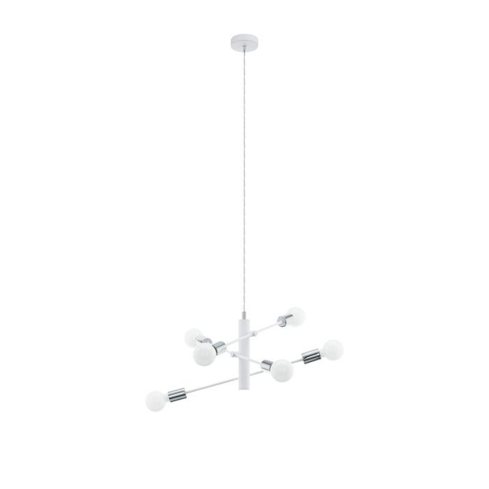 Πολύφωτο κρεμαστό φωτιστικό από την εταιρεία Eglo σε λευκό χρώμα, με υποδοχές για 6 λαμπτήρες και ντουί E27. Διαθέτει vintage σχεδιασμό που προσδίδει στυλ και χαρακτήρα στον χώρο σας, ενώ ταυτόχρονα δημιουργεί μια ατμόσφαιρα που συνδυάζει την αισθητική του παρελθόντος με τον σύγχρονο σχεδιασμό. Είναι κατασκευασμένο από μέταλλο, ένα υλικό δημοφιλή στα κρεμαστά φωτιστικά οροφής, καθώς πέρα από τη μοντέρνα νότα που προσφέρει, είναι ιδιαίτερα ανθεκτικό στον χρόνο. Καθαρίζεται εύκολα με ένα πανί.