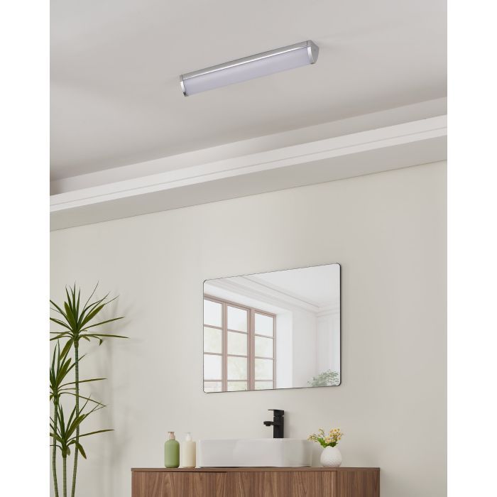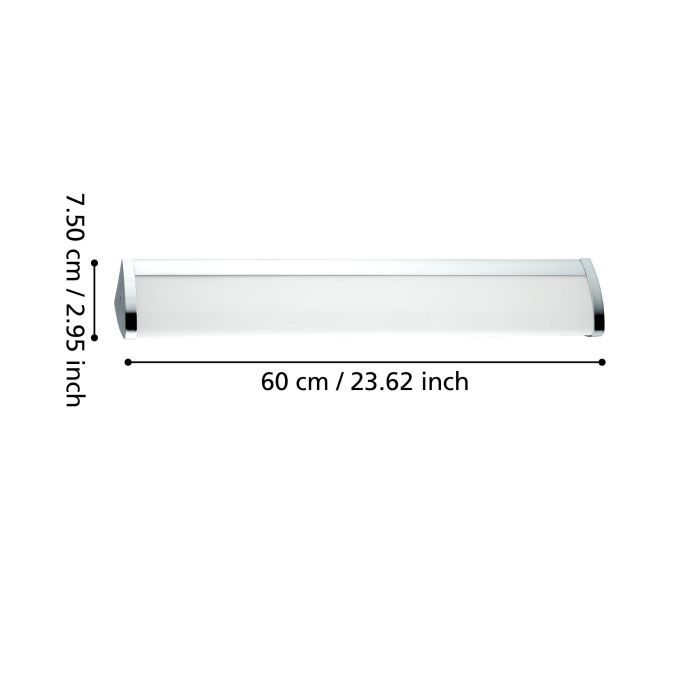Μοντέρνο φωτιστικό τοίχου της Eglo σε λευκό χρώμα, με πλάτος 60εκ. Το ενσωματωμένο LED που διαθέτει εκπέμπει φυσικό λευκό φως που αποδίδεται στην κλίμακα Kelvin με τιμές από 4000Κ έως 5500Κ. Οι τόνοι του φυσικού λευκού μοιάζουν με το φως της ημέρας και δεν περιέχουν άλλες αποχρώσεις.