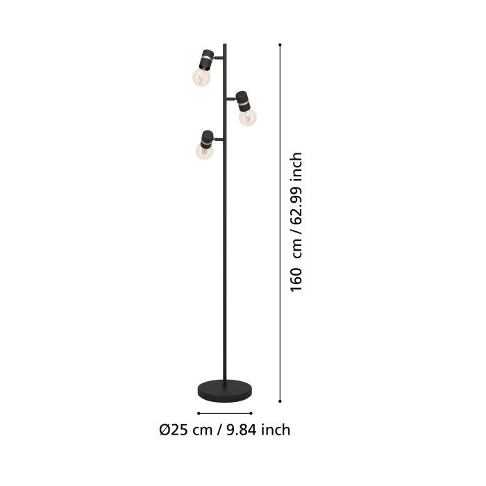Φωτιστικό δαπέδου Lurone της Eglo σε μαύρο χρώμα, με ντουί για λαμπτήρες E27.
