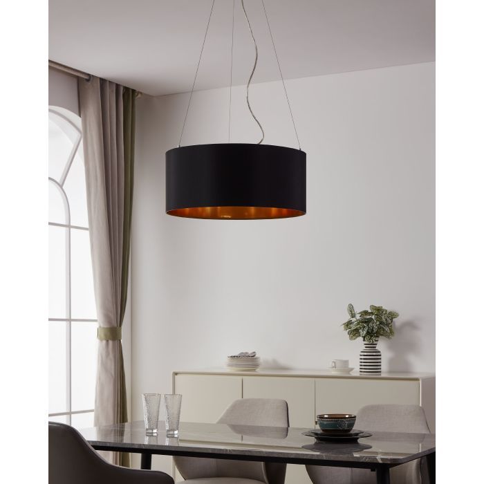 Eglo Maserlo Μοντέρνο Κρεμαστό Φωτιστικό Τρίφωτο με Ντουί E27 σε Μαύρο Χρώμα 31605