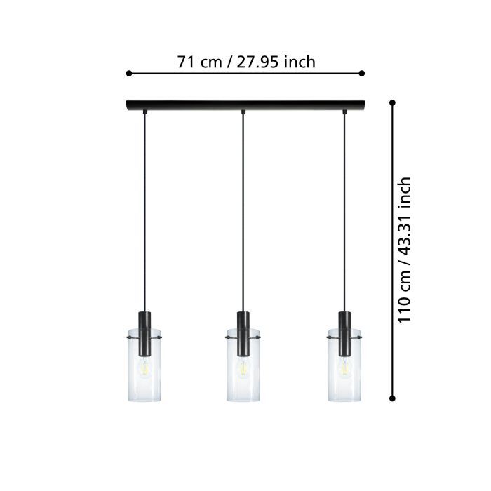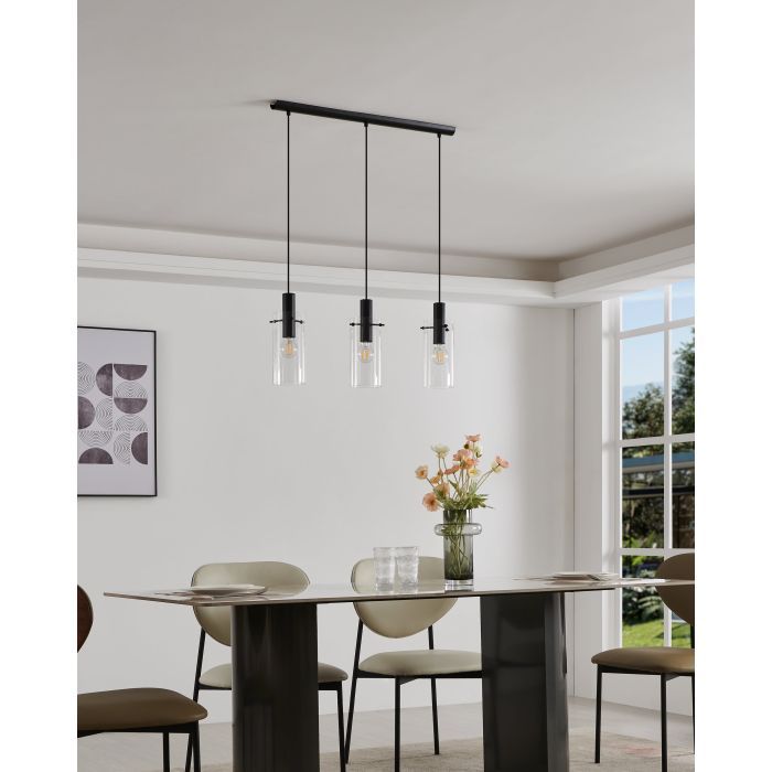 Eglo Montefino Μοντέρνο Κρεμαστό Φωτιστικό Τρίφωτο Ράγα με Ντουί E27 σε Μαύρο Χρώμα 97367