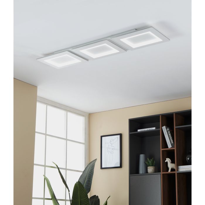 Κλασική πλαφονιέρα οροφής της Eglo σε λευκό χρώμα, από μέταλλο. Διαθέτει ενσωματωμένο LED.