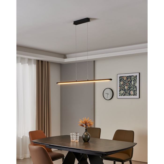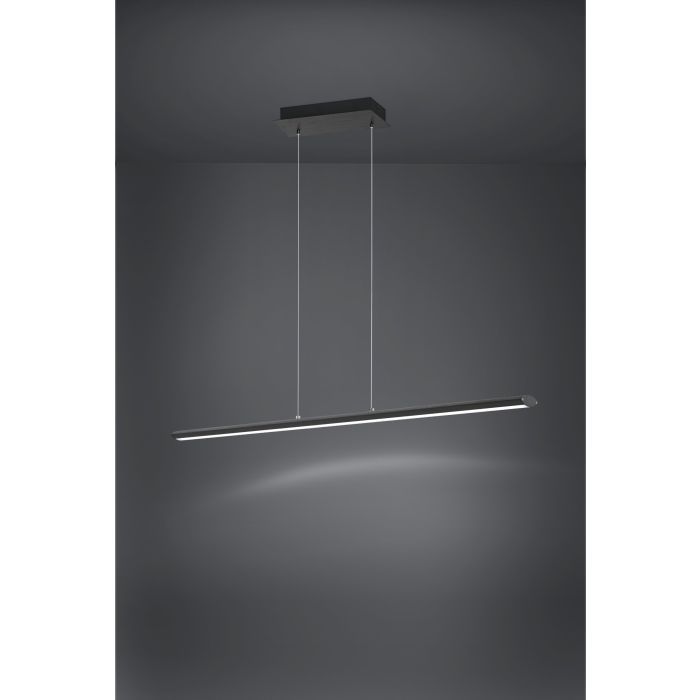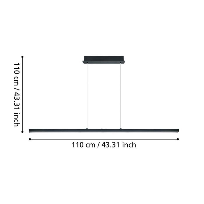 Kρεμαστό φωτιστικό με ενσωματωμένο LED από την εταιρεία Eglo σε μαύρο χρώμα. Είναι κατασκευασμένο από μέταλλο, ένα υλικό δημοφιλή στα κρεμαστά φωτιστικά οροφής, καθώς πέρα από τη μοντέρνα νότα που προσφέρει, είναι ιδιαίτερα ανθεκτικό στον χρόνο. Καθαρίζεται εύκολα με ένα πανί. Τέλος, η απόχρωση του LED ρυθμίζεται ανάμεσα σε θερμό λευκό, φυσικό λευκό και ψυχρό λευκό φως. Έτσι, μπορείτε να εναλλάσσετε τις διαβαθμίσεις όποτε επιθυμείτε.