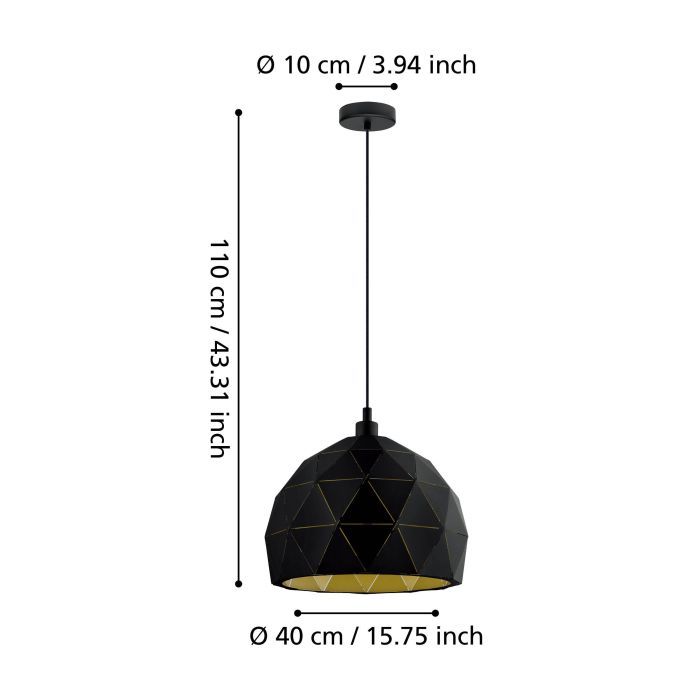 Eglo Roccaforte Κρεμαστό Φωτιστικό Μοντέρνο Μονόφωτο Καμπάνα Μαύρο 97841