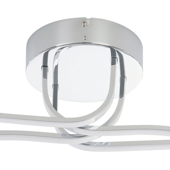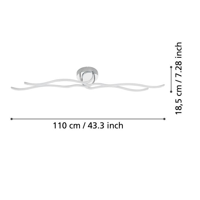 Μοντέρνα πλαφονιέρα οροφής της Eglo σε ασημί χρώμα, από πλαστικό. Διαθέτει ενσωματωμένο LED, το οποίο εκπέμπει θερμό λευκό φως που αποδίδεται στην κλίμακα Kelvin με τιμές από 2400Κ έως 3800Κ. Αυτοί οι τόνοι του λευκού είναι πιο κίτρινοι σε σχέση με το φυσικό φως.