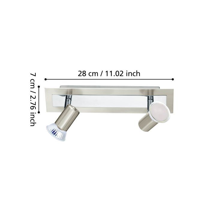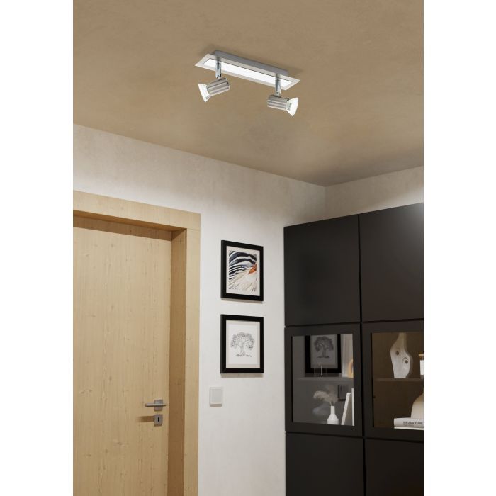 Διπλό σποτ με ντουί GU10 της Eglo σε ασημί χρώμα. Διαθέτει κομψό σχεδιασμό και δημιουργεί ένα ζεστό περιβάλλον στον χώρος σας.