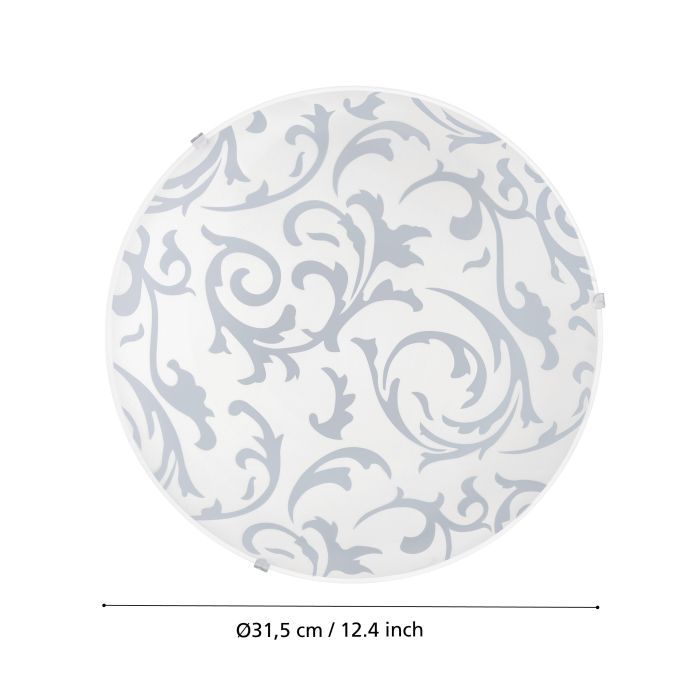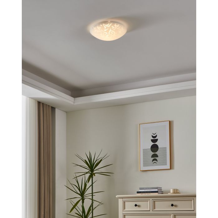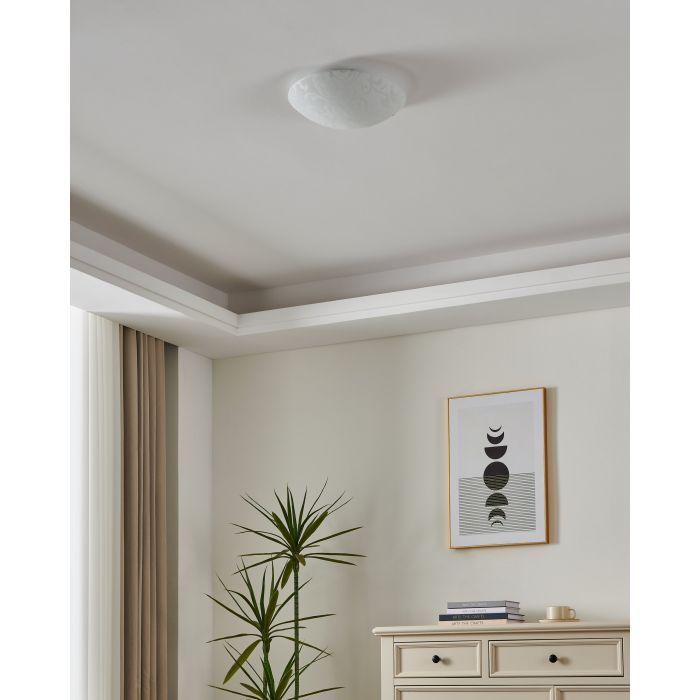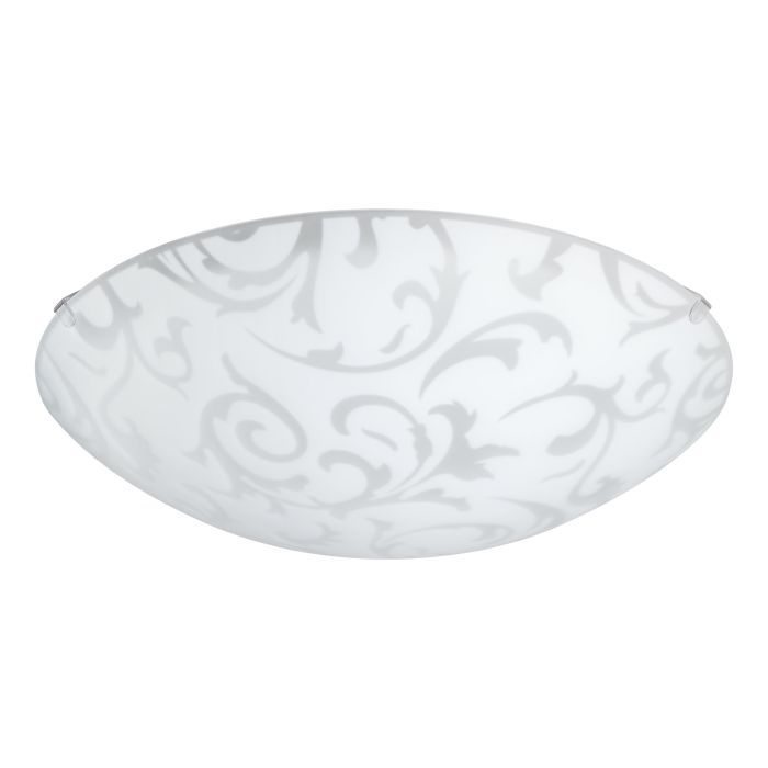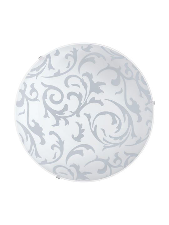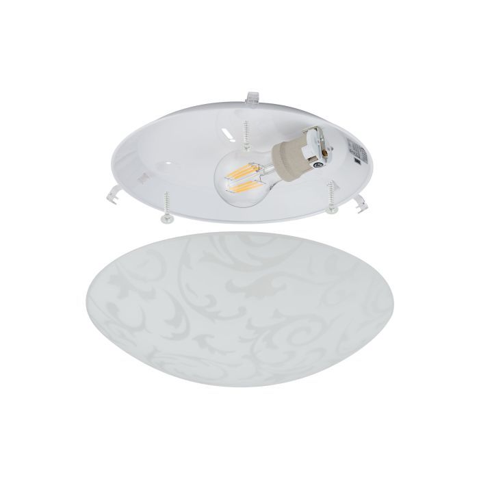 Κλασική πλαφονιέρα οροφής της Eglo σε λευκό χρώμα, από γυαλί. Διαθέτει ντουί για λαμπτήρες E27.