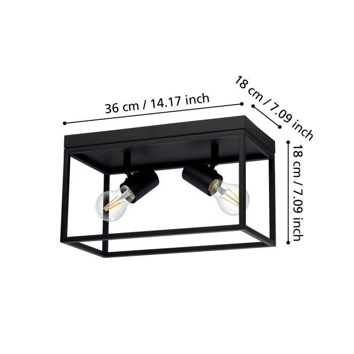Eglo Silentina Μοντέρνα Μεταλλική Πλαφονιέρα Οροφής με Ντουί E27 σε Μαύρο χρώμα 36cm 98332