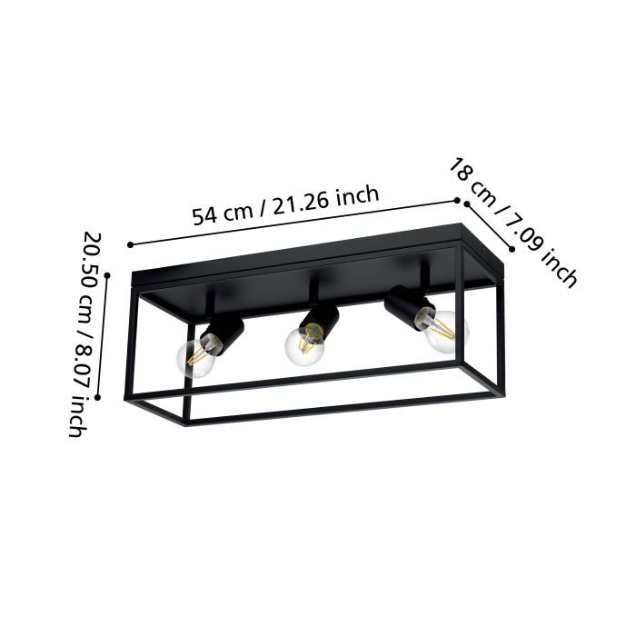 Eglo Silentina Vintage Μεταλλική Πλαφονιέρα Οροφής με Ντουί E27 σε Μαύρο χρώμα 54cm 98333