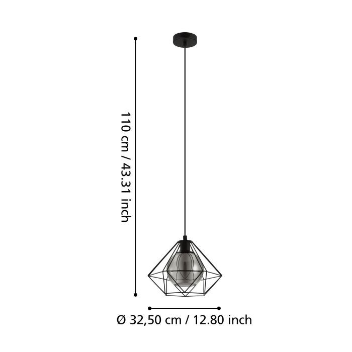 Μονόφωτο κρεμαστό φωτιστικό πλέγμα από την εταιρεία Eglo σε μαύρο χρώμα, με υποδοχή για έναν λαμπτήρα και ντουί E27. Διαθέτει vintage σχεδιασμό που προσδίδει στυλ και χαρακτήρα στον χώρο σας, ενώ ταυτόχρονα δημιουργεί μια ατμόσφαιρα που συνδυάζει την αισθητική του παρελθόντος με τον σύγχρονο σχεδιασμό. Είναι κατασκευασμένο από μέταλλο, ένα υλικό δημοφιλή στα κρεμαστά φωτιστικά οροφής, καθώς πέρα από τη μοντέρνα νότα που προσφέρει, είναι ιδιαίτερα ανθεκτικό στον χρόνο. Καθαρίζεται εύκολα με ένα πανί.